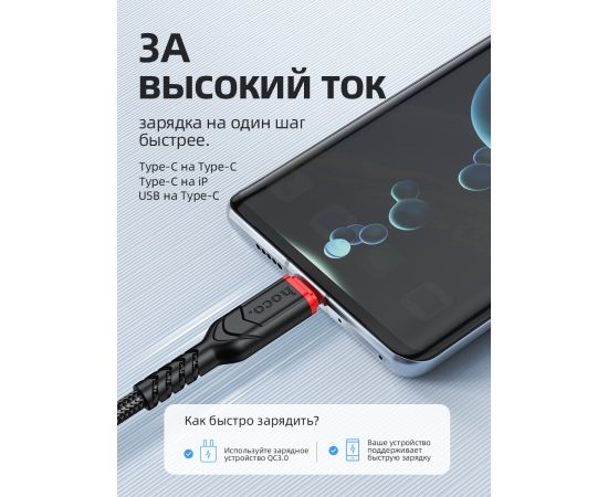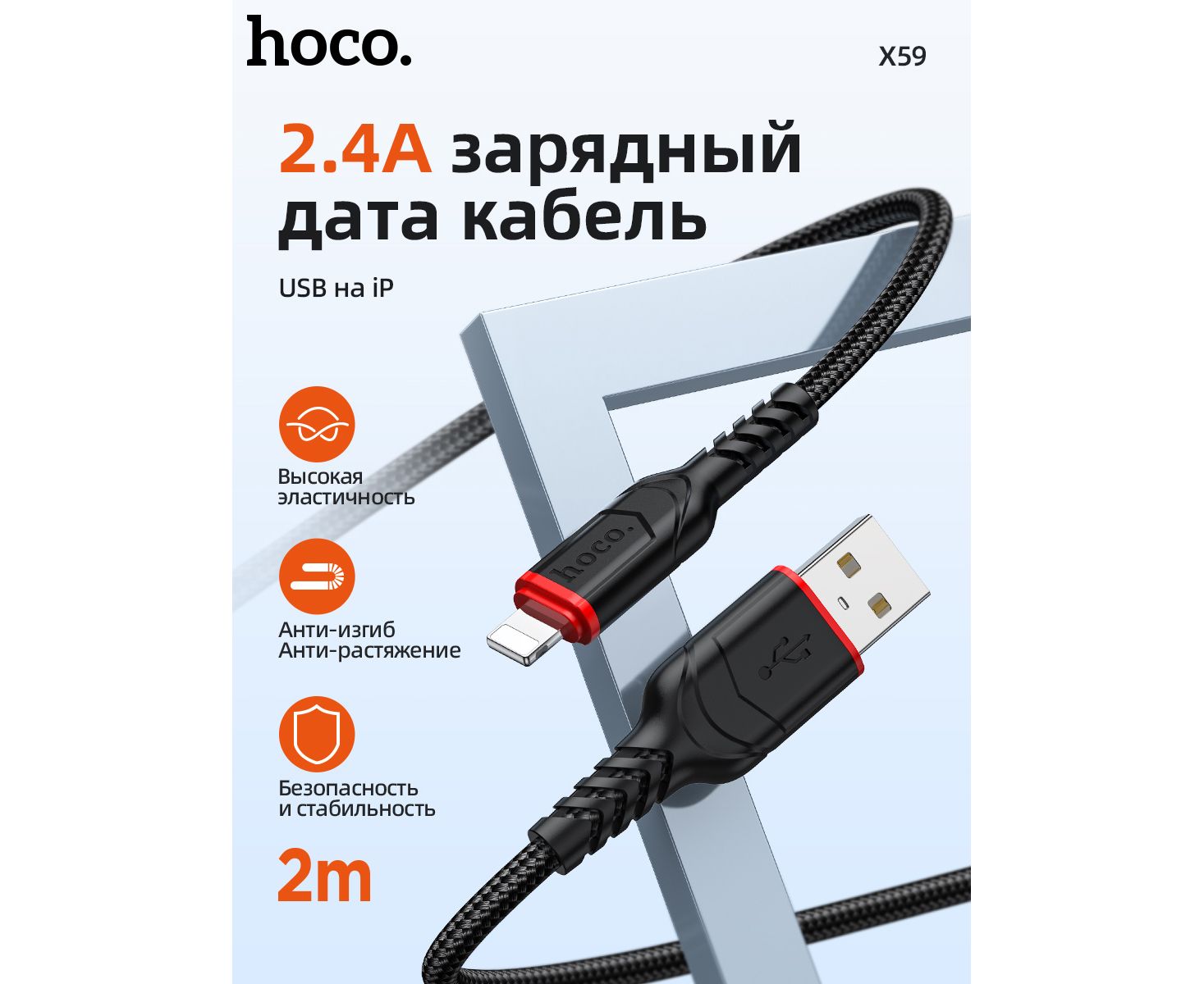 Дата-кабель HOCO X59 Victory charging data cable iP, 2м, (черный)