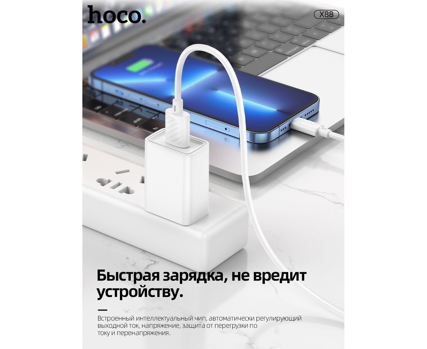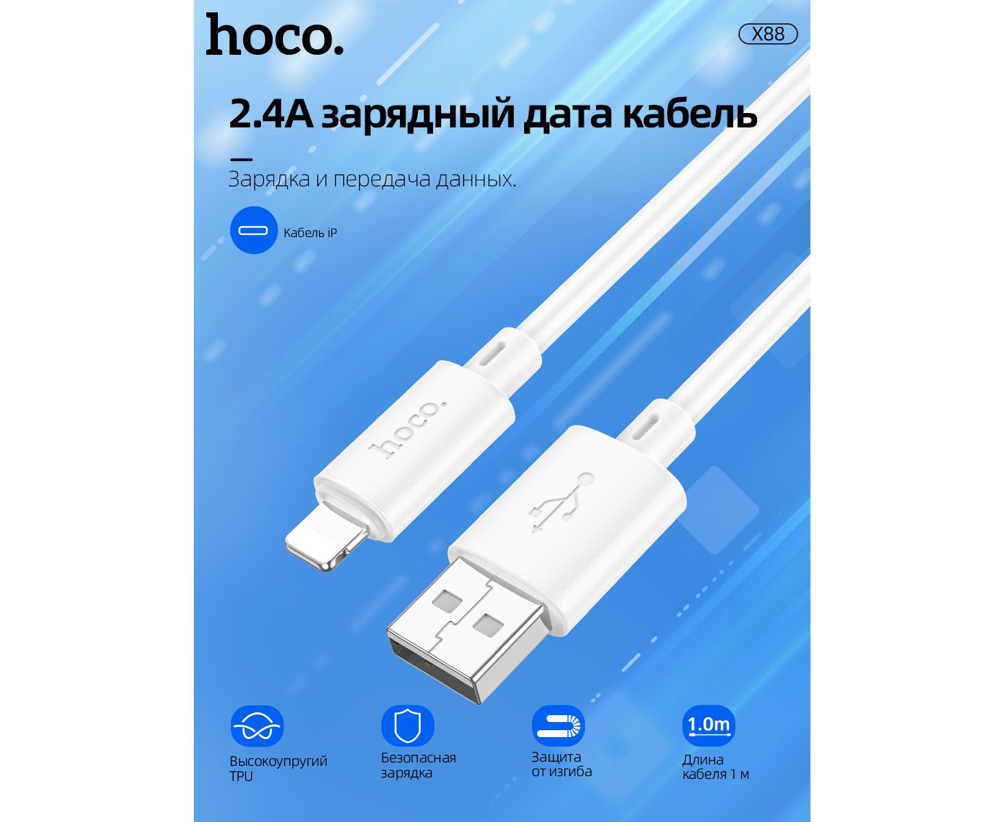 Дата-кабель HOCO X88 Gratified charging data cable for Lightning, 1м (белый)