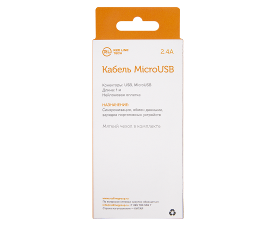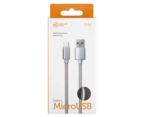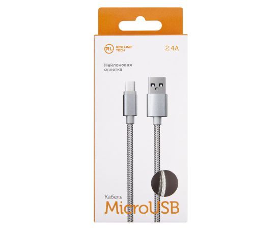 Дата-кабель Red Line USB - micro USB, 2.4А, нейлоновая оплетка, белый (мягкий футляр)