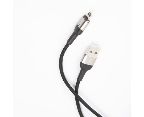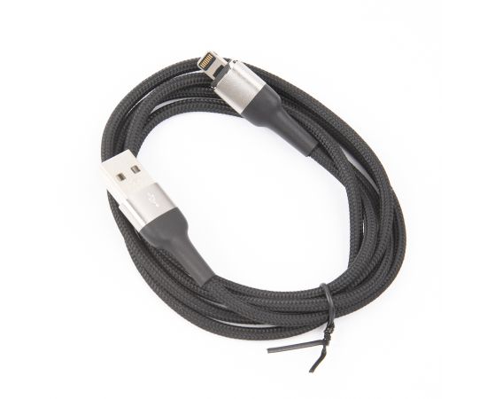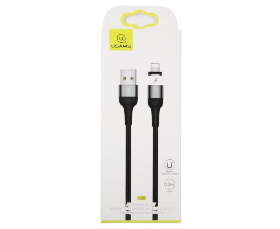 Дата-Кабель USAMS US-SJ326 U28 USB - Lightning, 2.4A (1 м) с индикатором, магнитный, нейлоновая оплетка, серый (SJ326USB03)