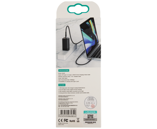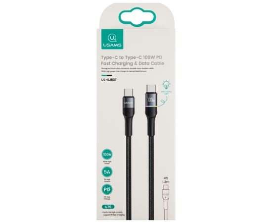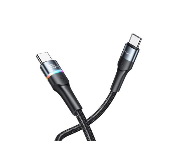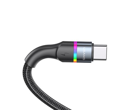 Дата-Кабель USAMS US-SJ537 U76 Type-C - Type-C, PD 100W, 5А, подсветка, нейлоновая оплетка, черный (SJ537USB01)