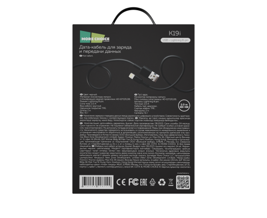 Материал коннектора: металл Наружное покрытие: TPE Спецификация медной проволоки: 40+10*2/0,08 Коннектор: USB - Lightning 8-pin Сила тока: 2.0А. Длина: 2 м Комплектация: дата-кабель, держатель для кабеля, буклет. Цвета: Black, White