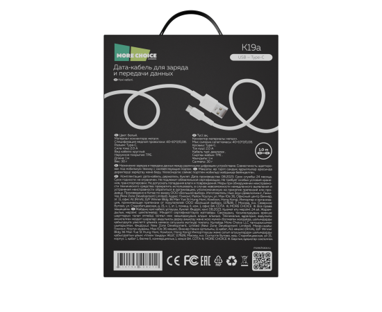 Материал коннектора: металл Наружное покрытие: TPE Спецификация медной проволоки: 40+10*2/0,08 Коннектор: USB - Type-C Сила тока: 2.0А. Длина: 1 м Комплектация: дата-кабель, держатель для кабеля, буклет. Цвета: Black, White