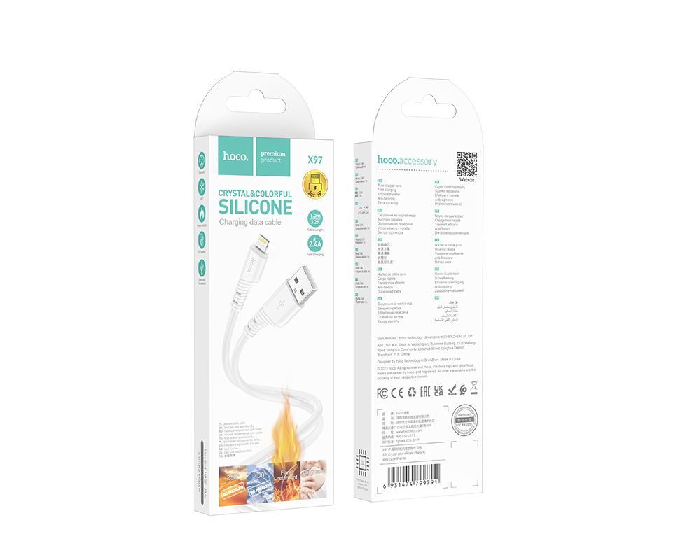 Дата-кабель USB 2.4A для Lightning 8-pin Hoco X97 силикон 1м (White)