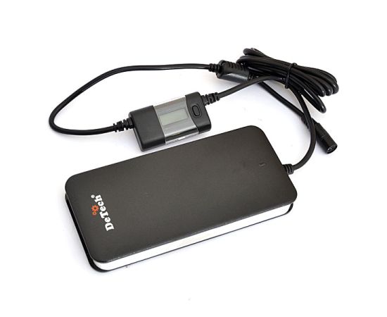 DeTech TJ-051 LCD Автоматический ультратонкий универсальный блок питания для ноутбуков с питанием 12-24 В — до 5 А, мощность 90 Вт. с USB выходом 5В 1А для зарядки различных устройств (МР3 плееров, моб. телефонов и др.). и LCD индикатором выходного напряжения.