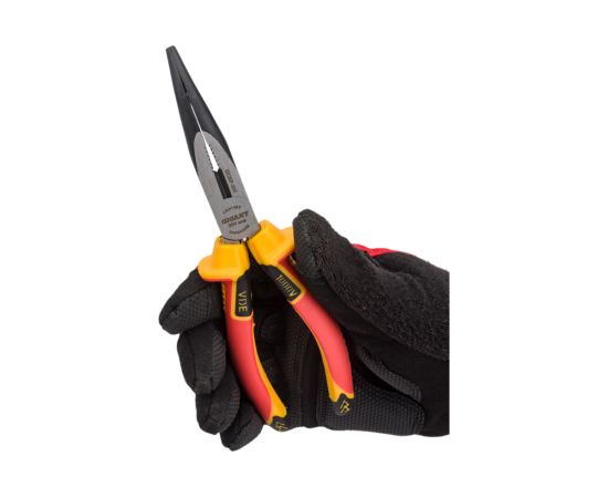 Изогнутые изолированные длинногубцы используются для проведения работ в точной механике. С ними легко выполнять захват, удержание и рез проволоки в труднодоступных местах. Диэлектрическое покрытие рукояток защищает пользователя от поражения током.