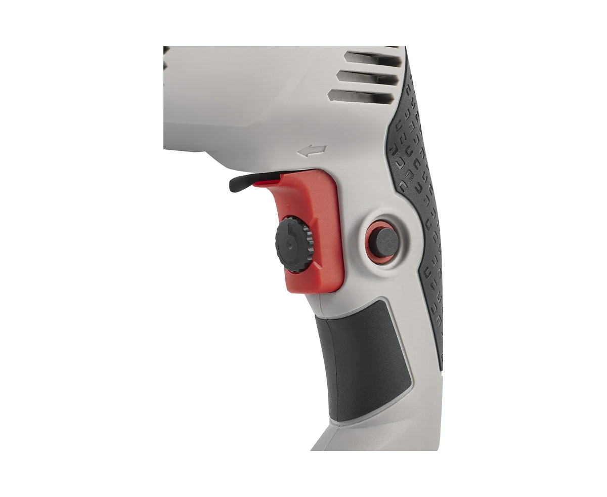 Для работ с разными материалами и с разнообразной оснасткой, дрель Crown CT10143-13C оснащена регулировкой частоты вращения с помощью встроенного в клавишу выключателя регулятора с 10-ю ступенями регулировки.