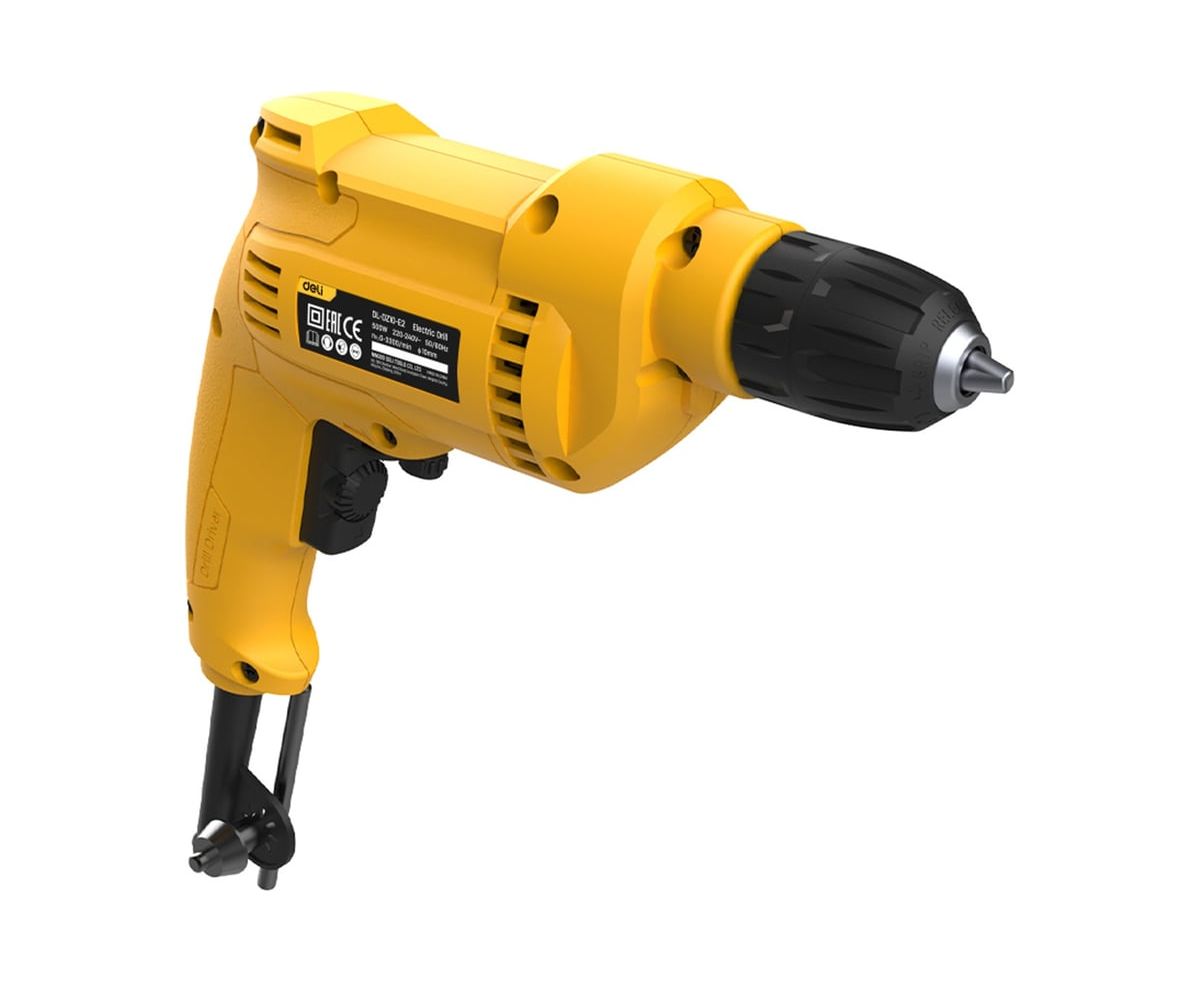Deli DL-DZ10-E2 — мощная и удобная сетевая дрель для любых задач!Двигатель 500 Вт и скорость до 3300 об/мин позволяют легко сверлить дерево, металл и пластик, а продуманная конструкция делает работу комфортной даже при интенсивном использовании.