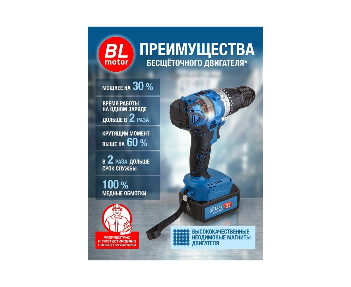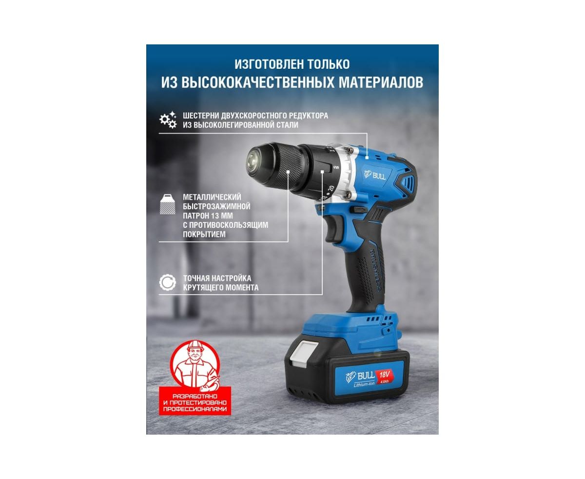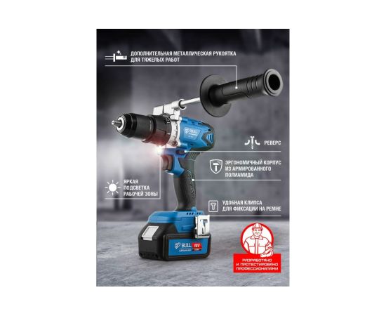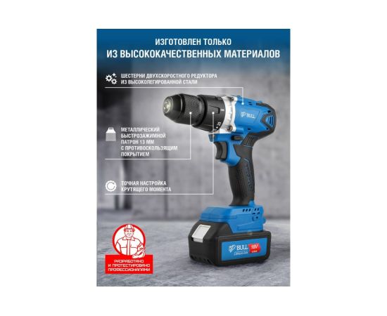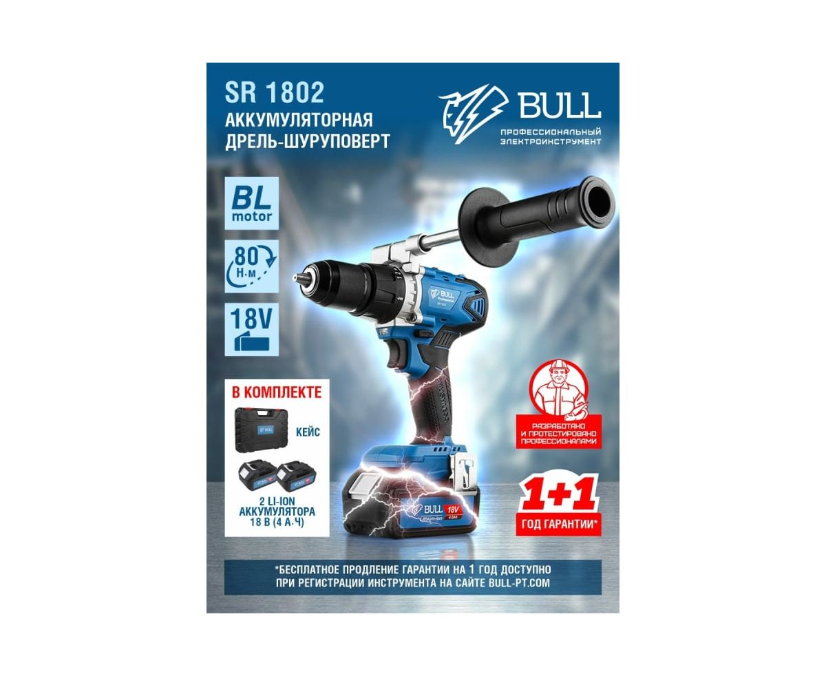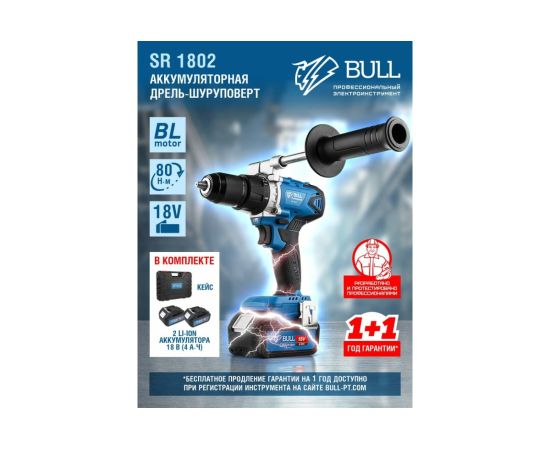 Дрель-шуруповерт BULL SR 1802 (04040329) аккумуляторная (2 АКБ+ЗУ)
