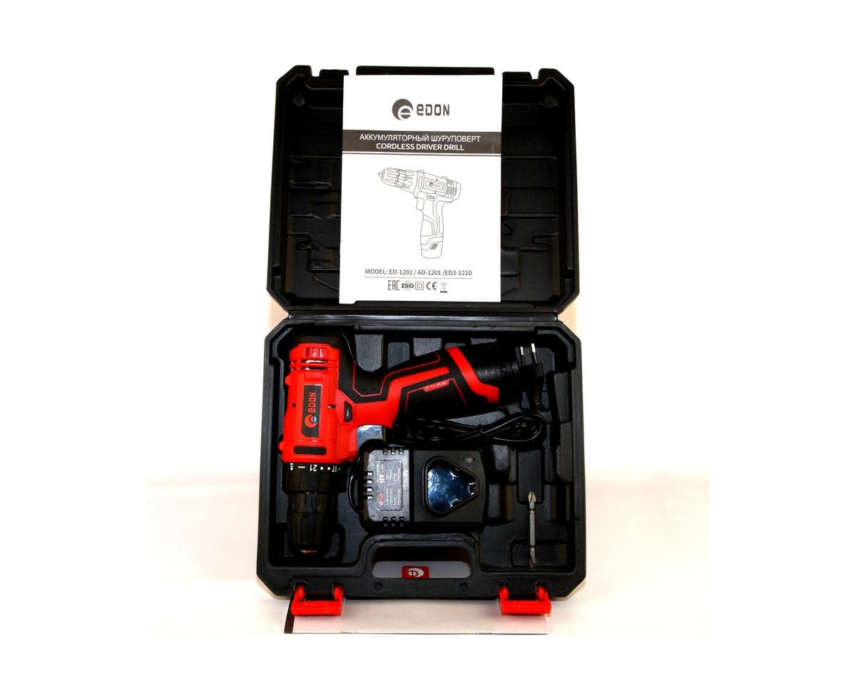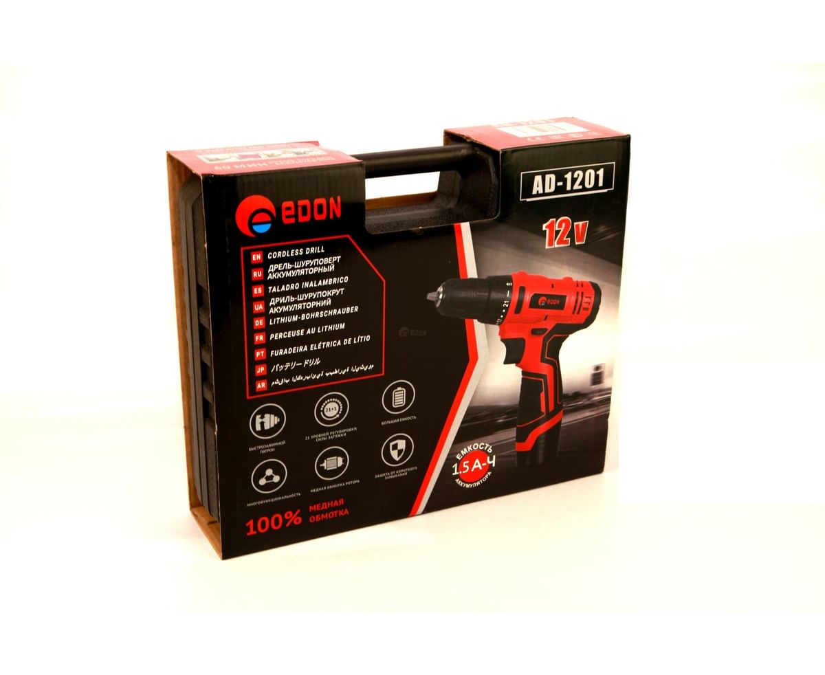 Дрель-шуруповерт EDON AD-1201 черный/красный 15417