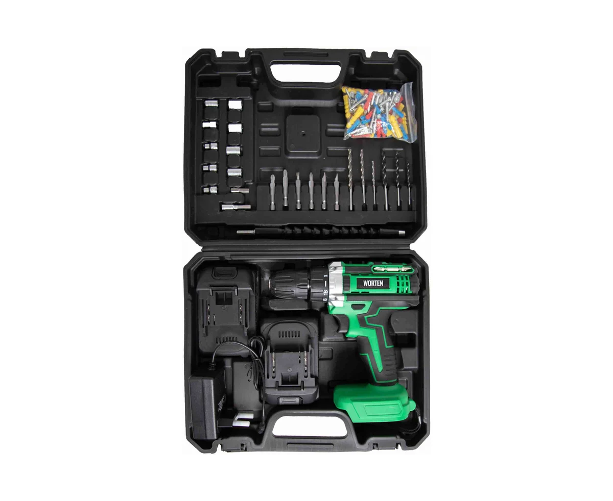 Дрель-шуруповерт WORTEN IM КА-90000574 2x2.0Ач+ЗУ, 21В с набором 63 инструмента