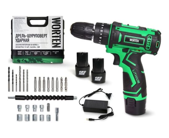 Дрель-шуруповерт WORTEN IM КА-90000580 ударная 2x2.0Ач+ЗУ