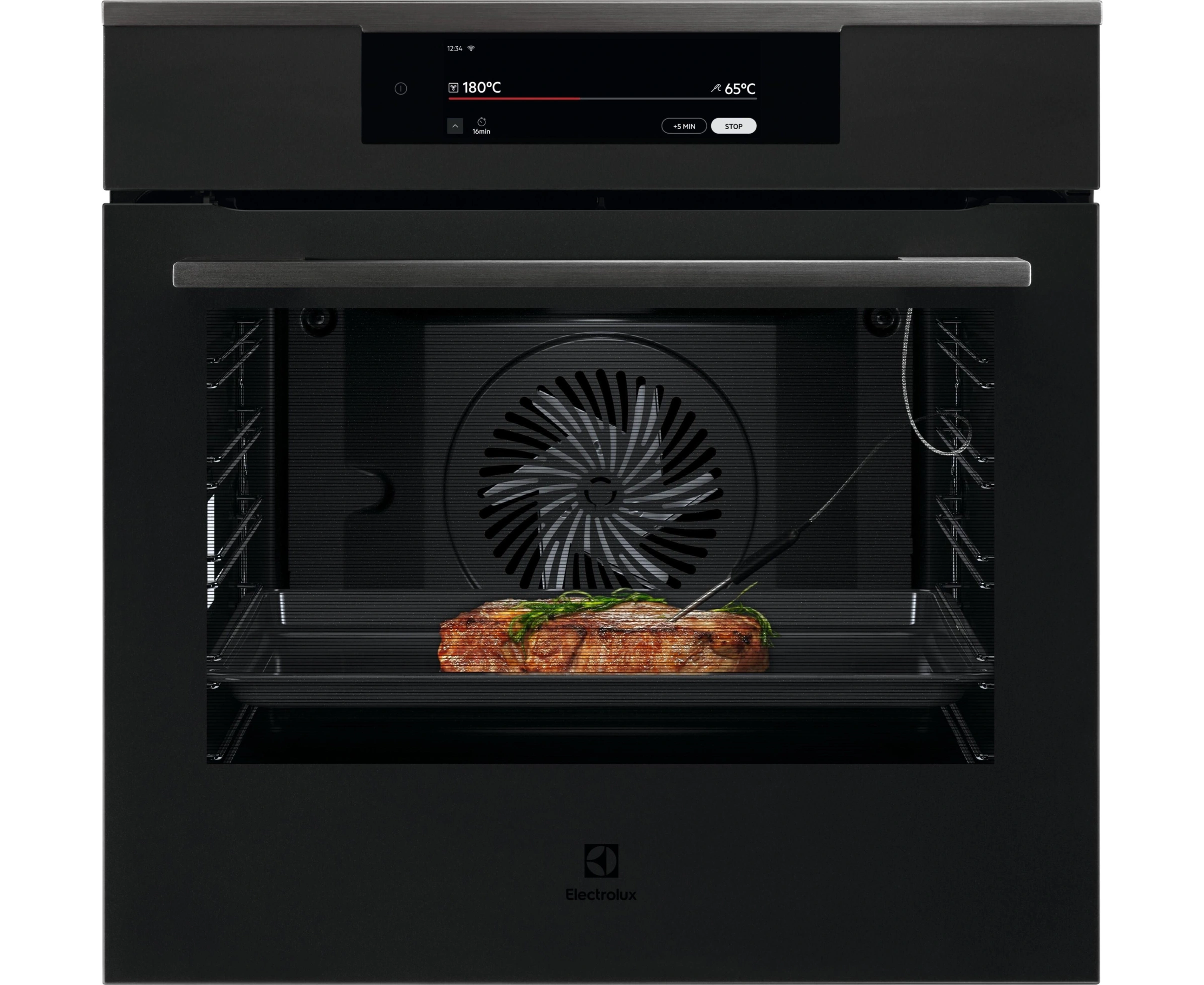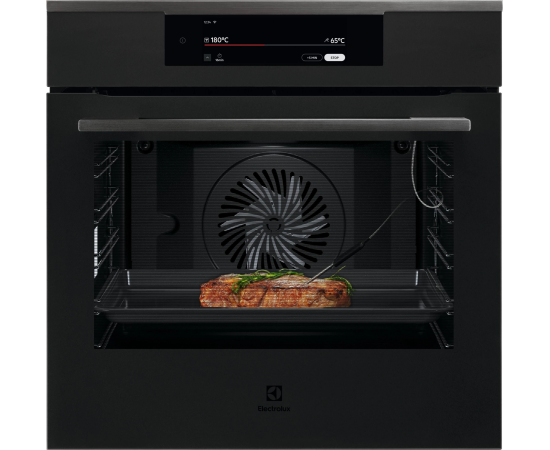 вентилятор охлаждения, двухуровневое освещение, дисплей, полностью стеклянная внутренняя поверхность дверцы духовки, термощуп