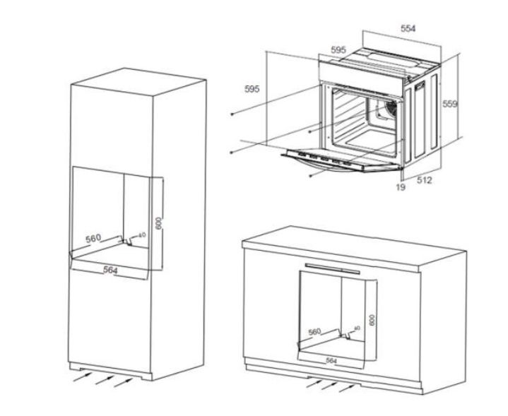 Размеры для встраивания (ВхШхГ) 600x564x560 мм
