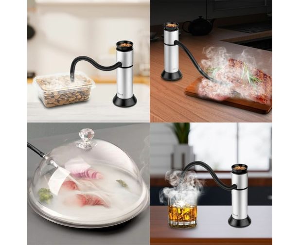 Окуривать продукты можно множеством способов, как напрямую, на открытом блюде, так и в закрытой посуде. Окурить блюдо можно в тарелке, кастрюле, пакете, стакане, под крышкой клош и даже в блендере при приготовлении коктейлей.
