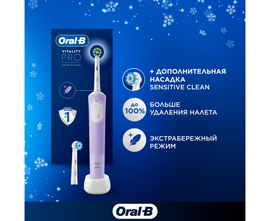 Электрическая зубная щетка Oral-B Vitality Pro 80368962 насадки 2шт, сиреневый