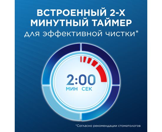 Электрическая зубная щетка с 2 сменными насадками. 3 режима чистки — ежедневная, бережная, экстра бережная. Встроенный таймер помогает чистить зубы в течение рекомендованного времени и сигнализирует каждые 30 секунд о необходимости сменить зону чистки. Цвет щетинок показывает необходимость смены насадки. Технология возвратно-вращательных движений способствует тщательному очищению поверхности зубов и удалению налета.