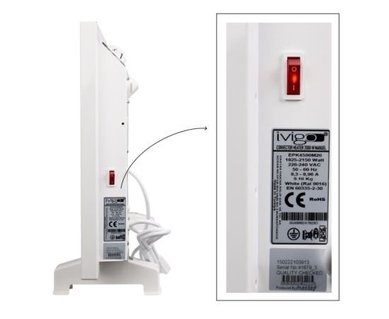 Конвекторы iVigo с механическим управлением автоматически отключаются в случае перегрева, если объект, такой как одежда, случайно падает на обогреватель. Когда посторонний предмет удален с поверхности, питание вновь подаётся и обогреватель автоматически начнет работать снова.