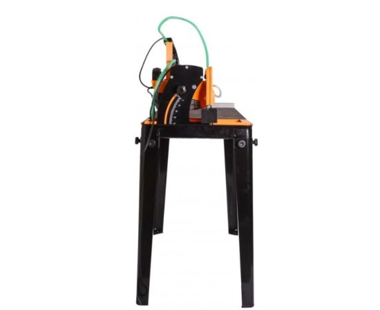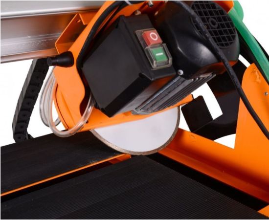 Складные ножки позволяют удобно хранить и без труда транспортировать плиткорез к месту работы.Принудительное водяное охлаждение эффективно охлаждает режущий диск и распиливаемый материал. Возможность прямого пиления под углом от 0 до 45°, косого в пределах до 90°, а также комбинированного пиления.