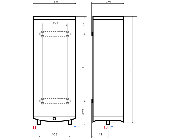 мин. давление воды: 0.2 бар; макс. давление воды: 6 бар; тип электрического нагревательного элемента: трубчатый; степень защиты от воды: IPX4; время нагрева всего объема (ΔT=45°С): 100 мин.; тепловые потери при 60 °С: 0,85 кВт∙ч за 24 ч; расстояние между входом холодной воды и выходом горячей воды: 408 мм