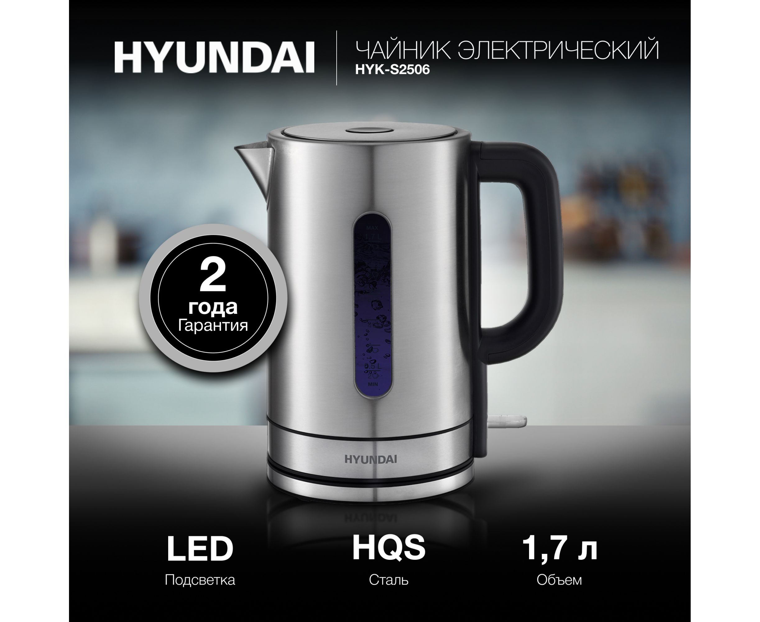Электрочайник Hyundai HYK-S2506 1.7л. серебристый металл