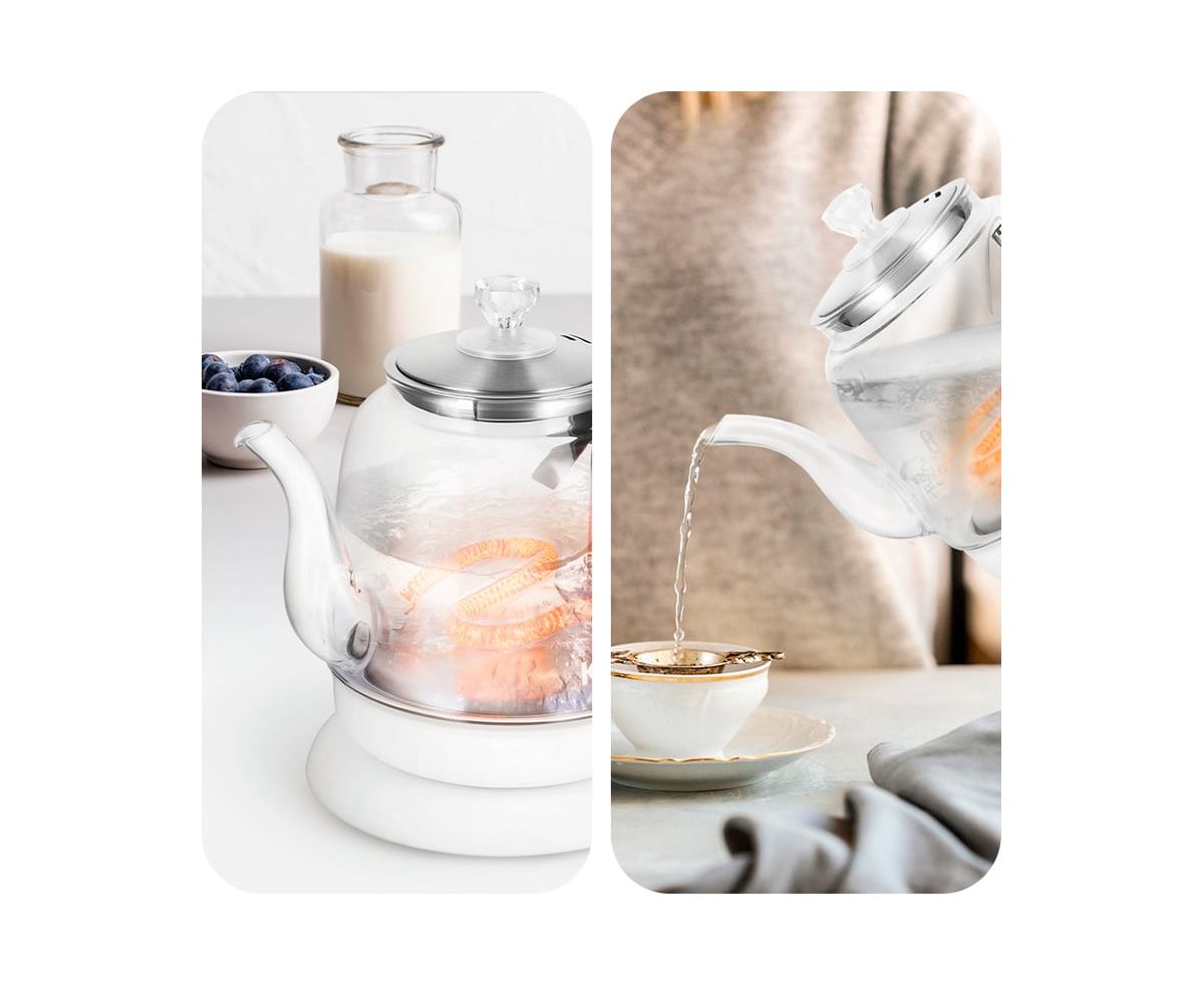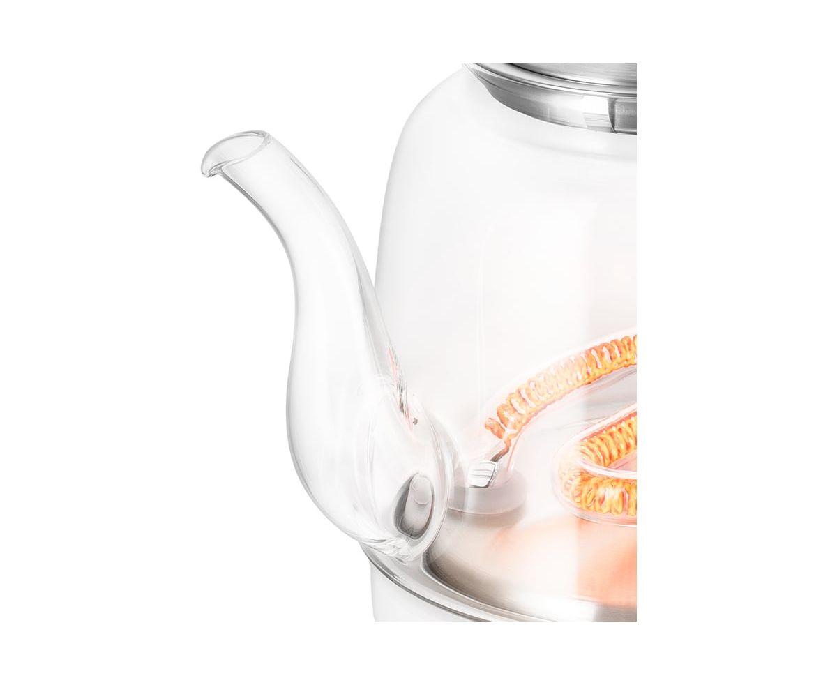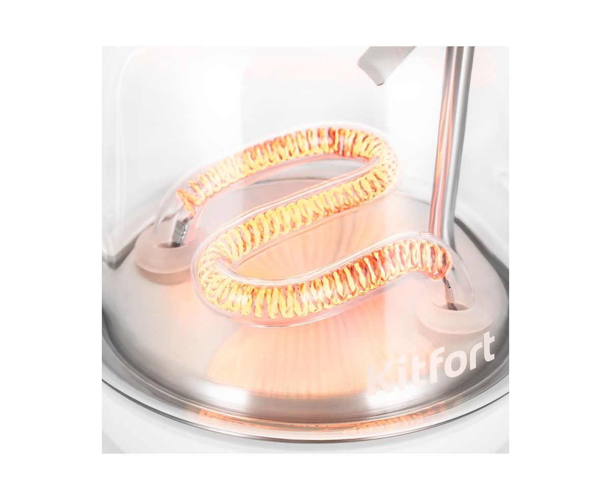 Инфракрасный нагревательный элемент у этой модели чайника находится в нижней части корпуса. Во время работы чайника нагреватель светится, что выглядит очень необычно и эффектно.