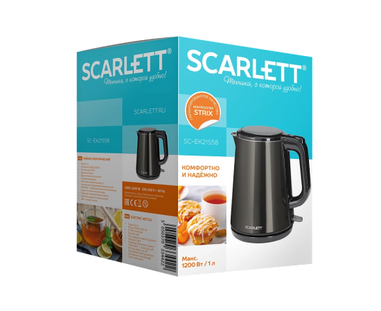 Электрочайник Scarlett SC-EK21S58 1л 1200Вт металл/пластик черный