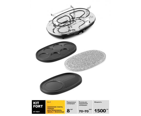 Электрогриль Kitfort КТ-1651 1500Вт серебристый