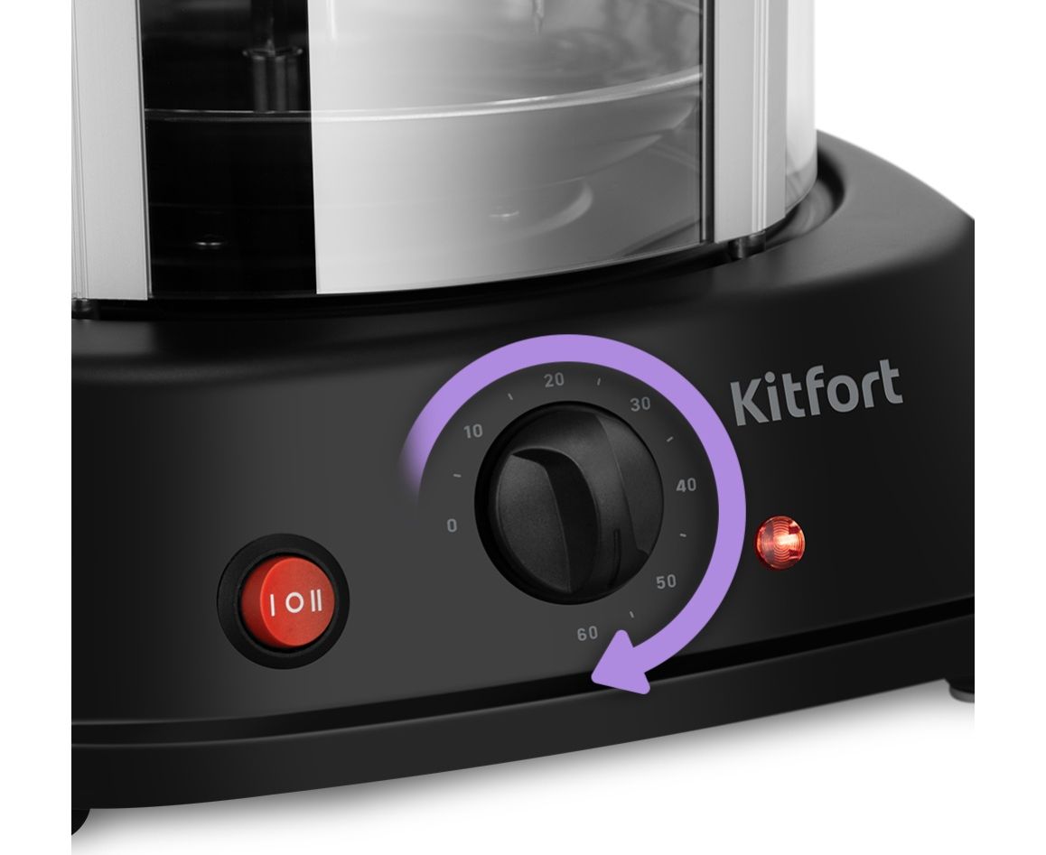 Переключатель служит для выбора уровня нагрева или выключения нагрева. Регулятор позволяет установить таймер до 60 минут. Поворот регулятора по часовой стрелке увеличивает значение таймера, поворот против часовой стрелки — уменьшает.