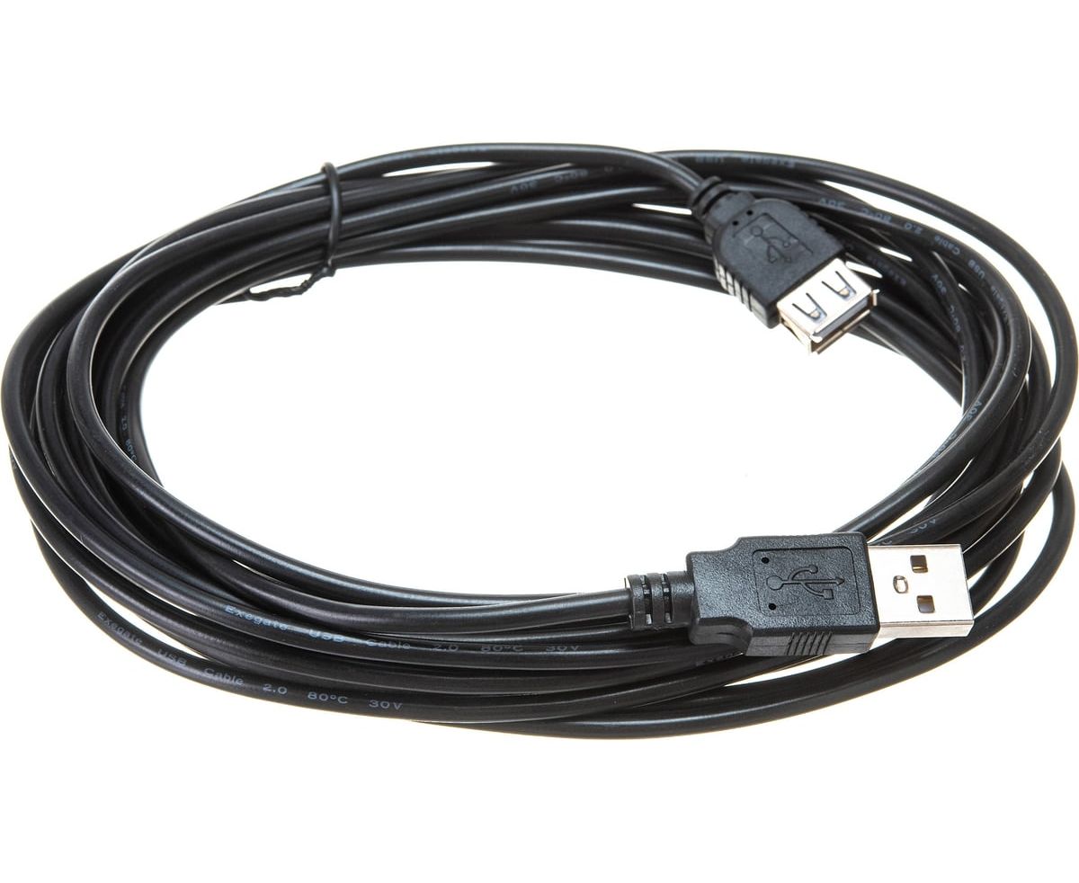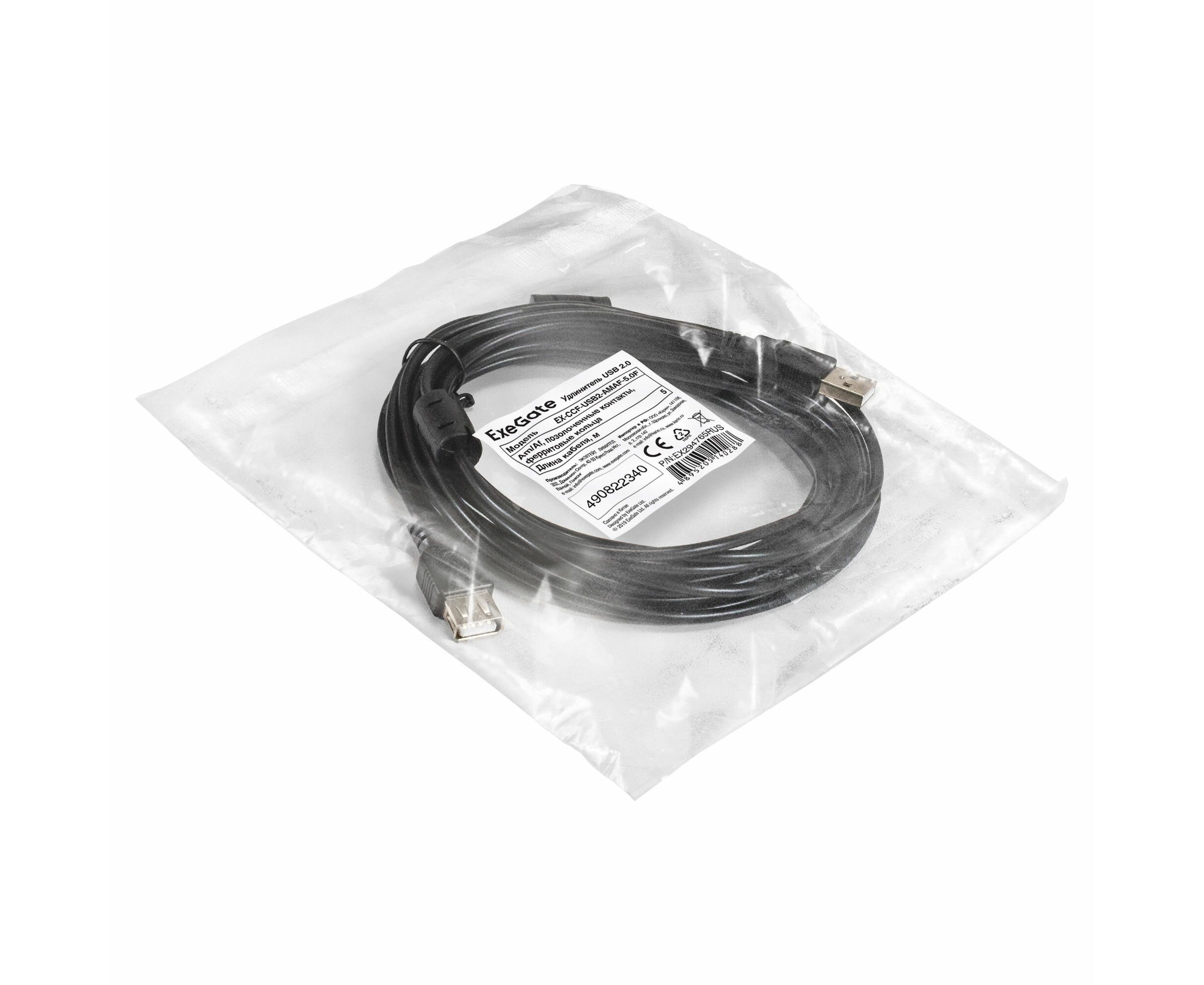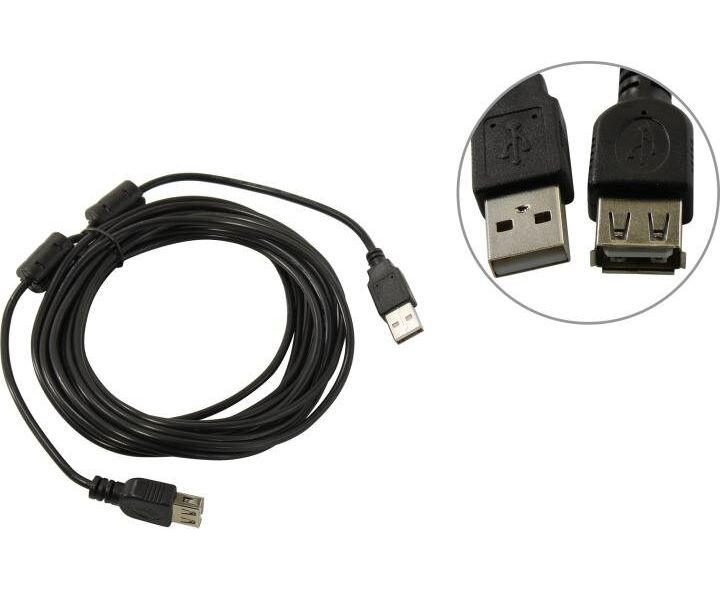 Удлинитель Exegate EX294765RUS USB 2.0 EX-CCFUSB2-AMAF-5.0F (Am/Af, позолоченные контакты, ферритовые кольца, 5м)