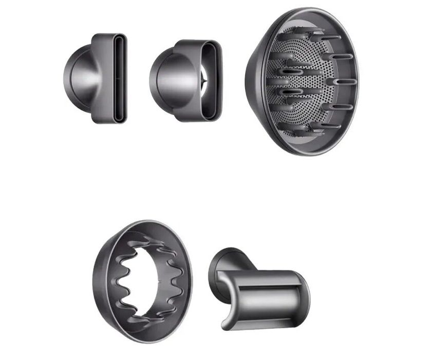 фен, насадка-концентратор 2 шт (широкий и зауженный профиль), диффузор, насадка для бережного высушивания, насадка для непослушных волос, инструкция