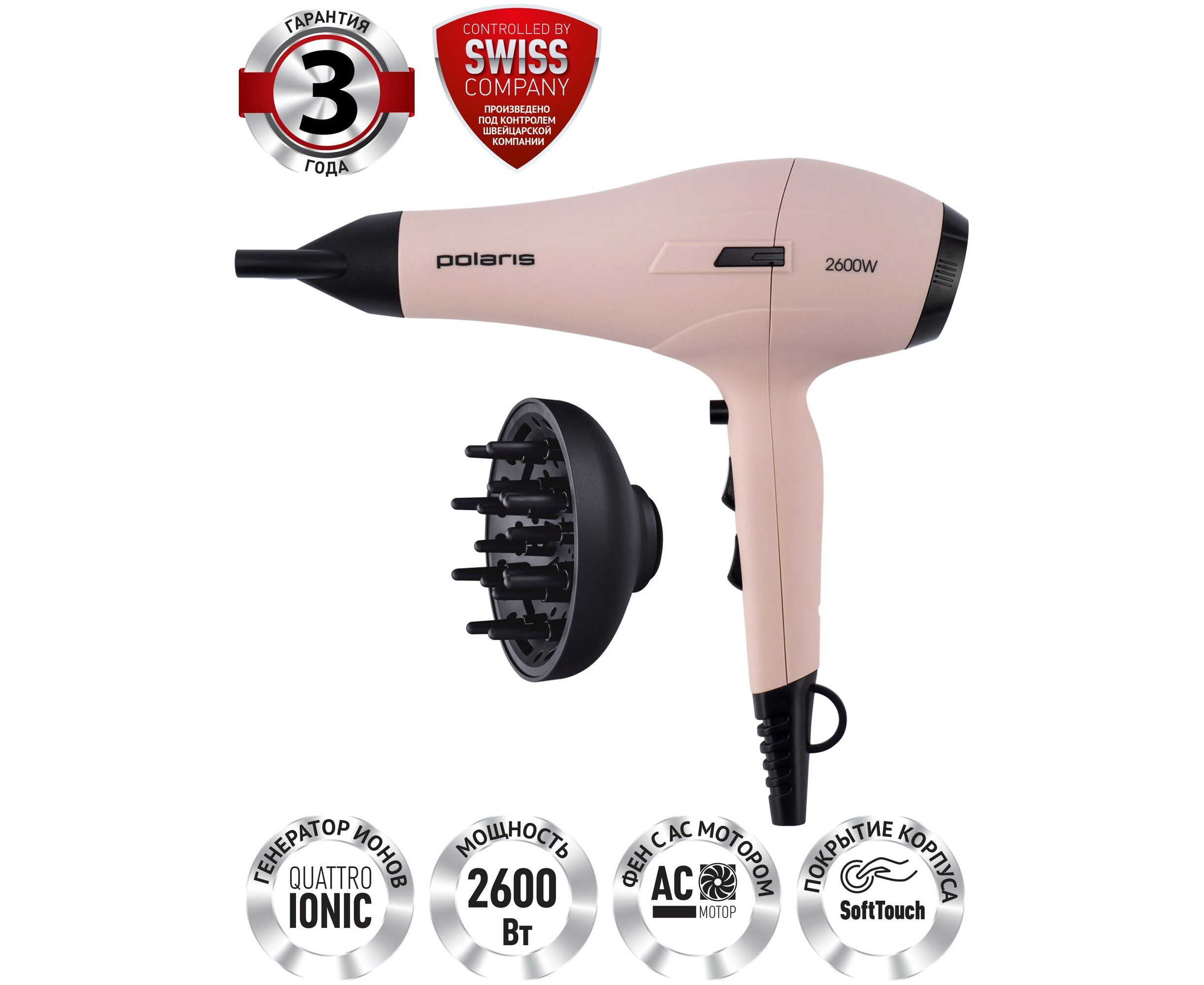 Фен Polaris PHD 2600ACi Salon Hair Пыльный розовый
