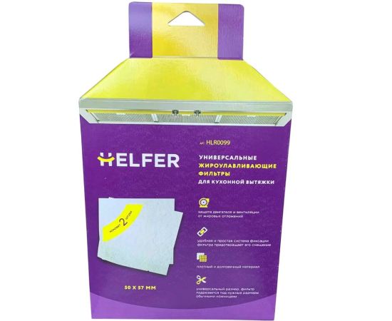 Универсальный жироулавливающий фильтр Helfer HLR0099 подойдёт для большинства кухонных вытяжек шириной 50 и 60 см. Он предназначен для защиты двигателя и вентиляционного канала от образования жировых отложений, кроме того, его можно легко установить самостоятельно.