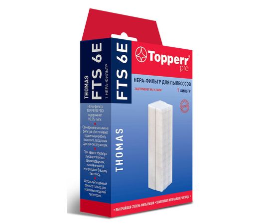 Описание: HEPA-фильтр FTS 6E для пылесосов Thomas серии Aquafilter обладает высочайшей степенью фильтрации, задерживает 99,5% пыли. Благодаря специальным свойствам фильтрующего материала, фильтр улавливает мельчайшие частицы, позволяя очищать воздух от пыльцы, микроорганизмов, бактерий и пылевых клещей.