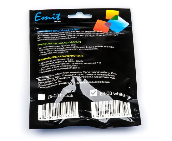 Гарнитура с микрофоном Dialog ES-03 White