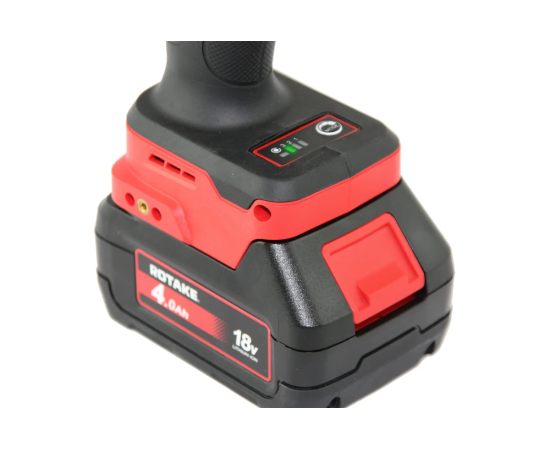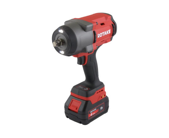 Гайковерт ударный аккумуляторный 1/2"DR ROTAKE. Инструмент оснащен двойной светодиодной подсветкой для оптимального освещения рабочей зоны, блоком управления режимами и автостопом со световой индикацией. Ударопрочный корпус с резино-полимерными вставками обеспечивает защиту от повреждений, а эргономичная противоскользящая рукоятка гарантирует удобство и надежность в использовании. Возможность установки дополнительных креплений для подвеса расширяет функциональность инструмента. Благодаря инновационной системе охлаждения CFD и интеллектуальной системе автоматической остановки, обеспечивается высокая долговечность и производительность. Энергоэффективная литий-ионная аккумуляторная батарея с индикацией заряда.