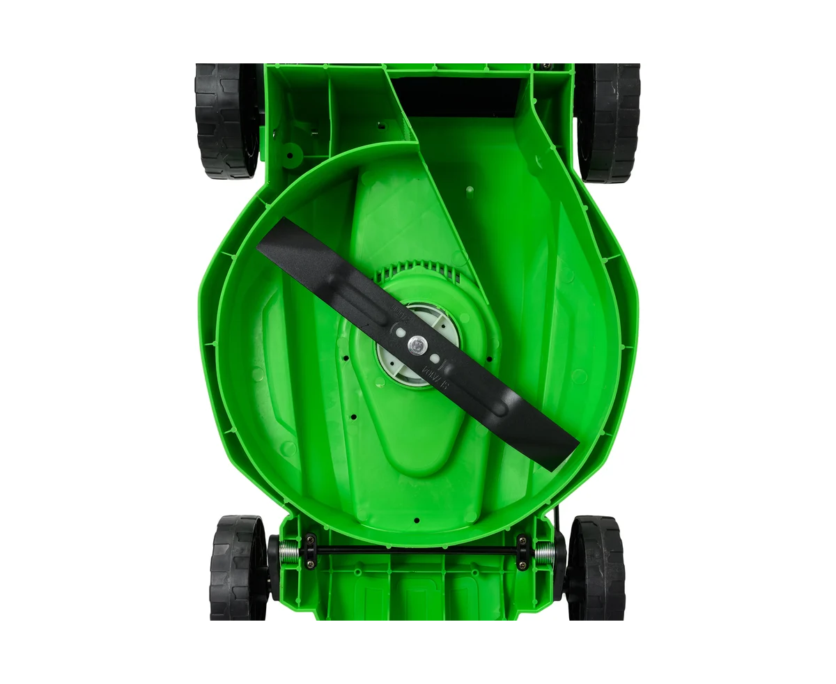 Газонокосилка позволяет регулировать высоту скашивания в пяти режимах, от 25 до 75 мм, что дает возможность адаптировать работу под различные условия. Корпус устройства выполнен из прочных материалов - металла и пластика, что гарантирует долговечность и устойчивость к внешним воздействиям.