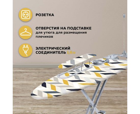 Гладильная доска предназначена для глажки белья. Модель оснащена электросоединителем и подставкой под утюг.