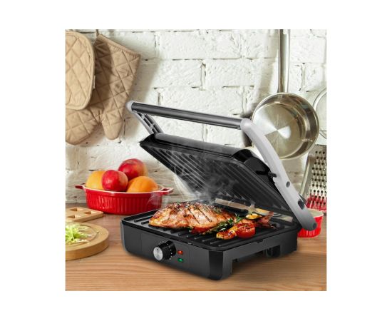 Гриль оснащен термостатом для поддержания температуры панелей, а также индикаторами питания и нагрева. С помощью регулятора температуры вы сможете плавно менять температуру приготовления.