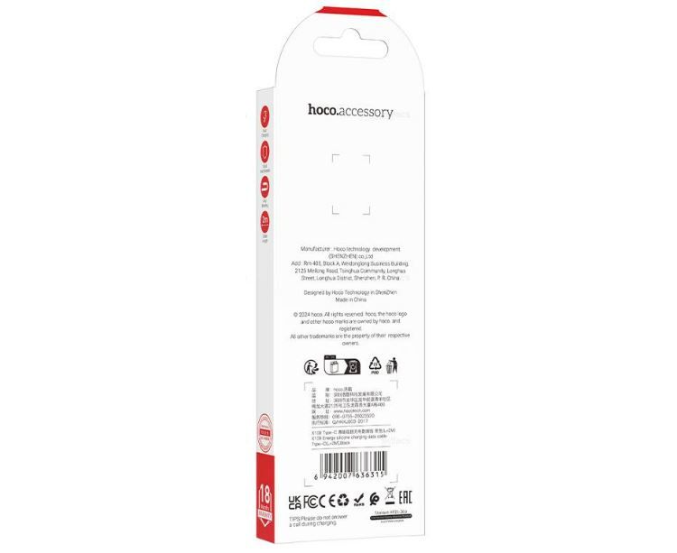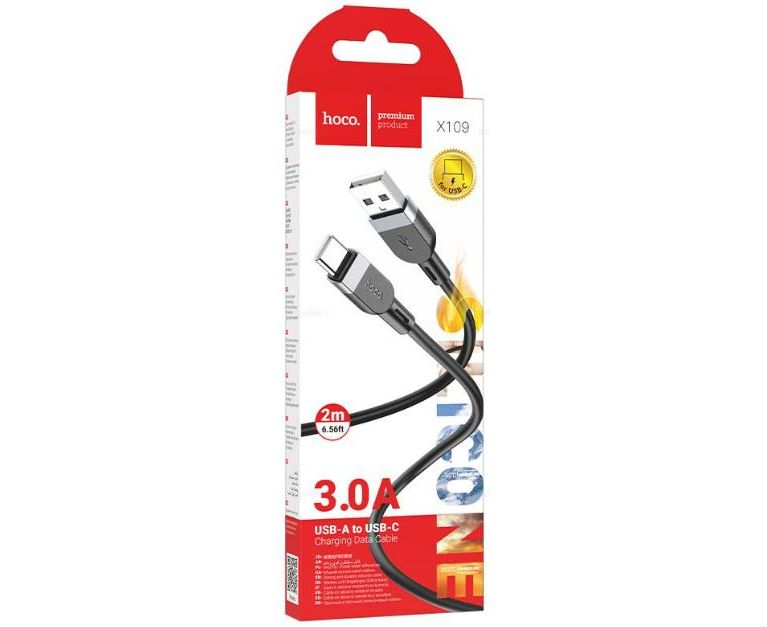 Кабель HOCO X109/ USB Type-C/ 2m/ 3A/ Силикон/ Черный