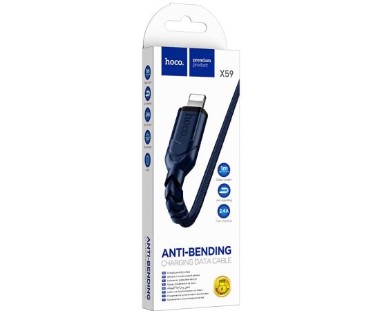 Кабель HOCO X59/ USB Lightning/ 1m/ 2.4A/ Нейлон/ Синий