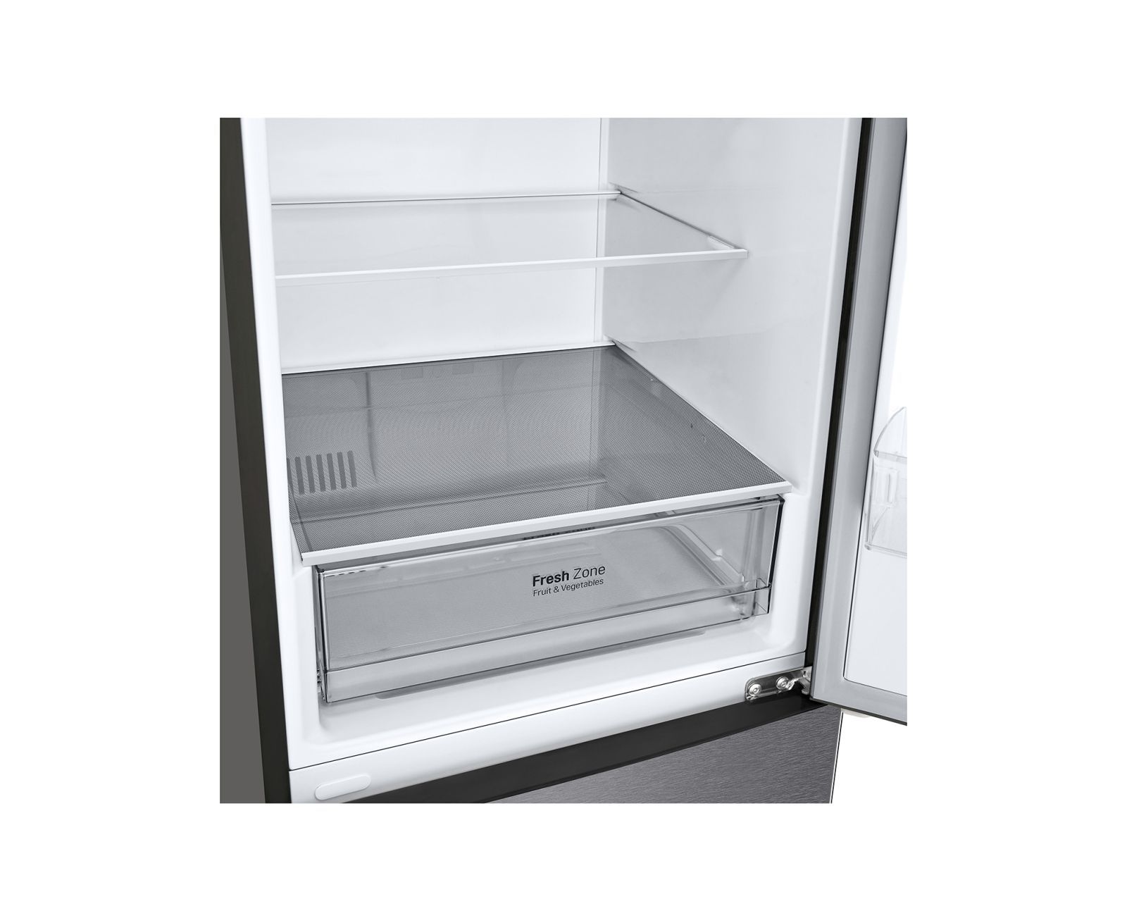 Конструкция петель обеспечивает открывание дверцы с нулевым зазором, поэтому распахивать ее на 90° и свободно выдвигать ящики можно, даже если прибор установлен вплотную к стене. Интуитивно понятное управление холодильником LG DoorCooling+ GA-B509CLWL, в том числе установка температуры в обеих камерах, выполняются при помощи сенсорной панели управления, размещенной на лицевой стороне дверцы.