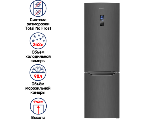 Full No Frost, Антибактериальное покрытие камеры, Дисплей, Светодиодная подсветка, Скрытые ручки, Суперзаморозка, Суперохлаждение