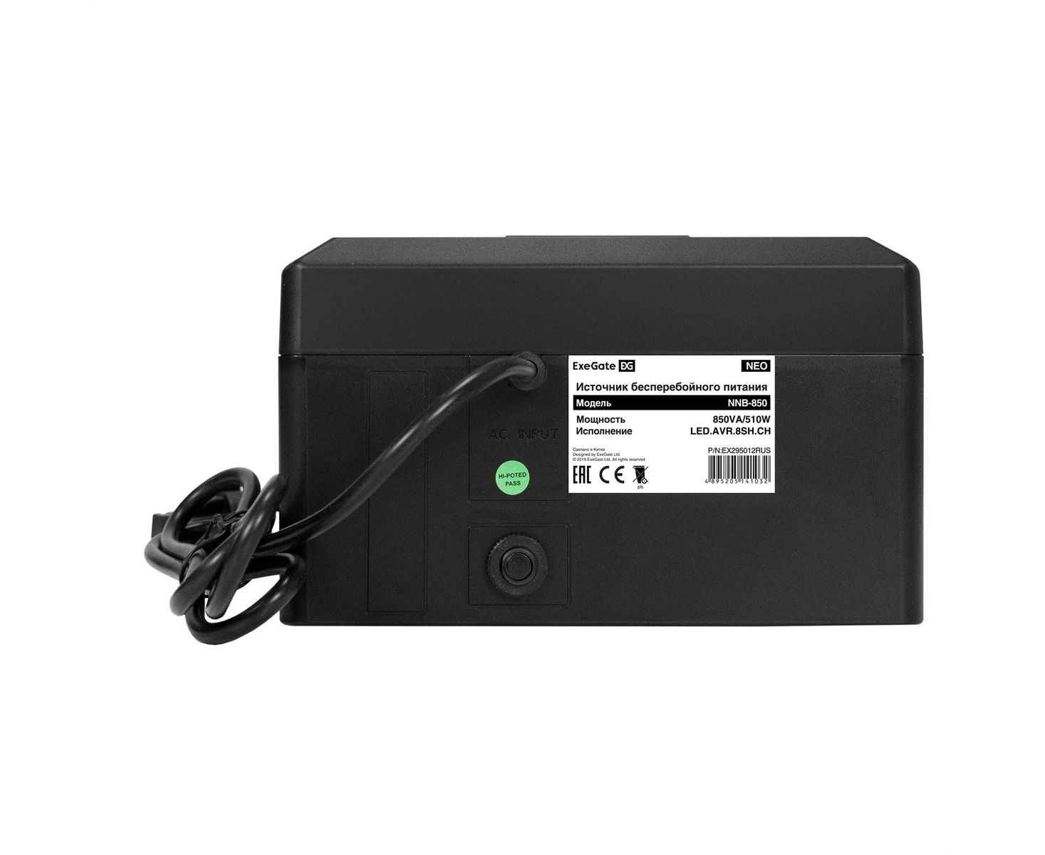 ИБП ExeGate Neo NNB-850.LED.AVR.8SH.CH (EX295012RUS) 850VA/510W, LED, AVR, 8*Schuko, 4*USB-порта для зарядки, Black