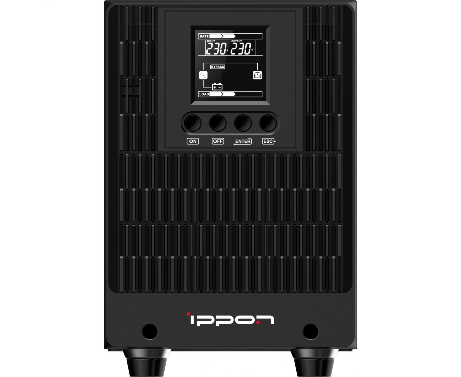 Многофункциональный графический ЖК-экран с подсветкой и кнопками управления обеспечит удобный мониторинг состояния ИБП и параметров электропитания.
