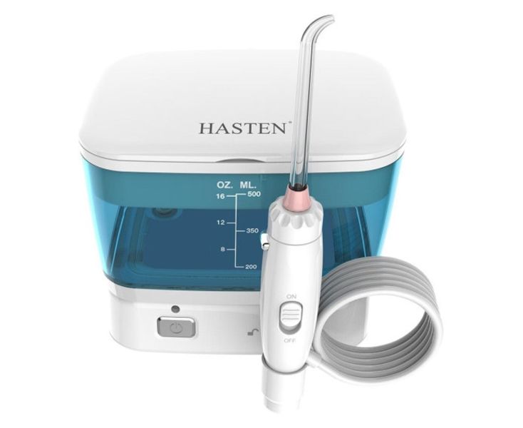 Ирригатор Hasten HAS840 подает струю посредством пульсации. Он работает в пяти режимах с давлением в диапазоне от 140 до 800 кПа. Резервуар вмещает до 500 мл воды. Отслеживать ее объем позволяет нанесенная на корпус шкала. Устройство подходит для взрослых и детей старше семи лет.