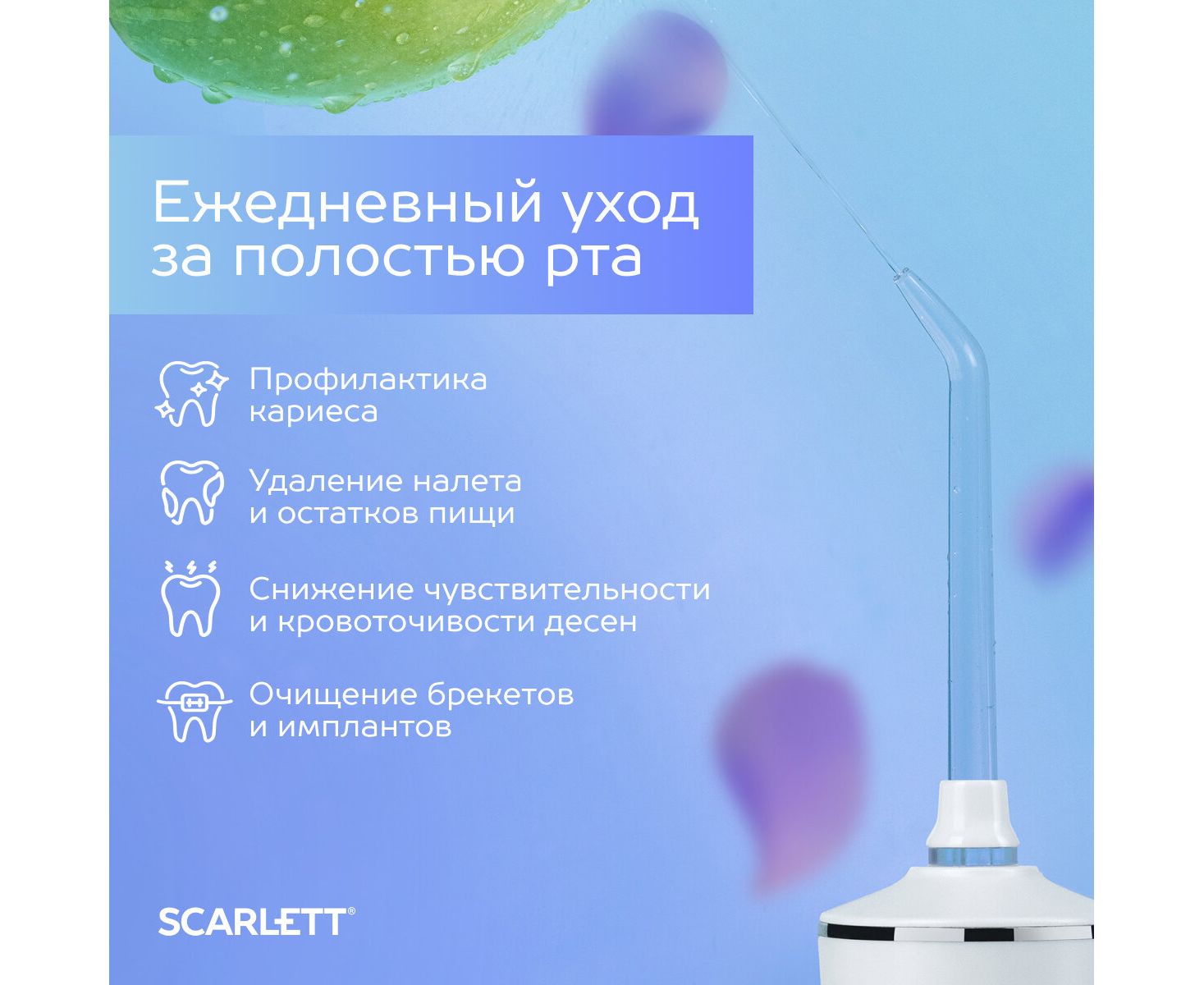 Подчеркните свой стиль и заботу о здоровье с ирригаторами Scarlett. Это больше, чем просто уход — это ваша уверенность и ваша улыбка!