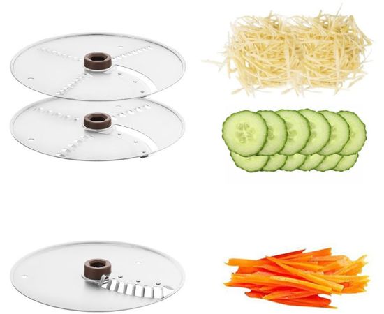 Комплектация: В комплекте с прибором идут 2 ножа «2 в 1» (тёрка и шинковка) и нож для нарезки соломкой. Прибор отлично справится с овощами, фруктами, сыром и другими продуктами.
