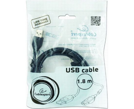 Кабель Cablexpert CCF2-USB2-AMBM-6 USB 2.0 Pro, AM/BM, 1.8м, экран, 2феррит.кольца, черный, пакет