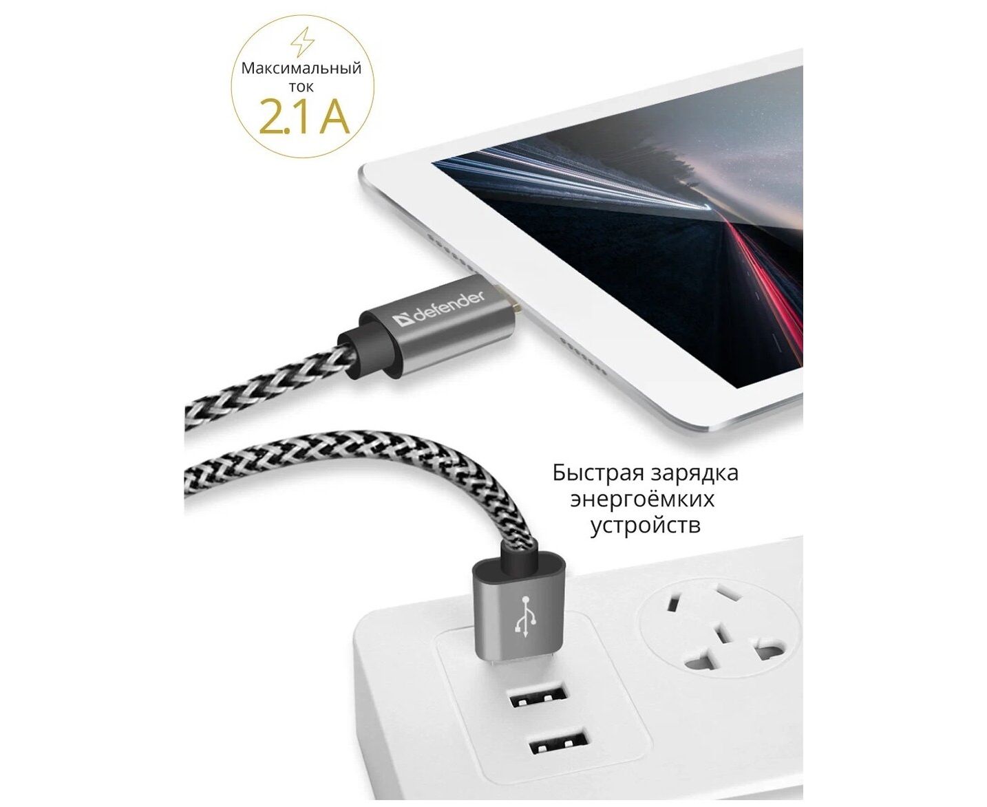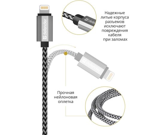USB кабель DEFENDER ACH01-03T PRO USB2.0 Белый, AM-LightningM, 1m, 2.1A 87809